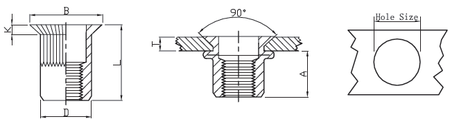 Lar / Produtos / Nozes de rebite cegas / Cantenha -cravada no corpo do corpo do corpo de rebite / Cantenha -cravada Body Baby Rivet Nuts / Aço -escavado porca de bobo de bobo de aço, tipo fechado do tipo