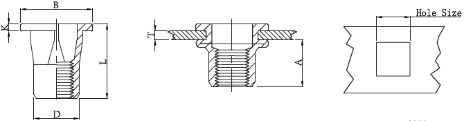 Lar / Produtos / Nozes de rebite cegas / Outras nozes do rebite / Nutas de rebite cegos de corpo quadrado de cabeça plana